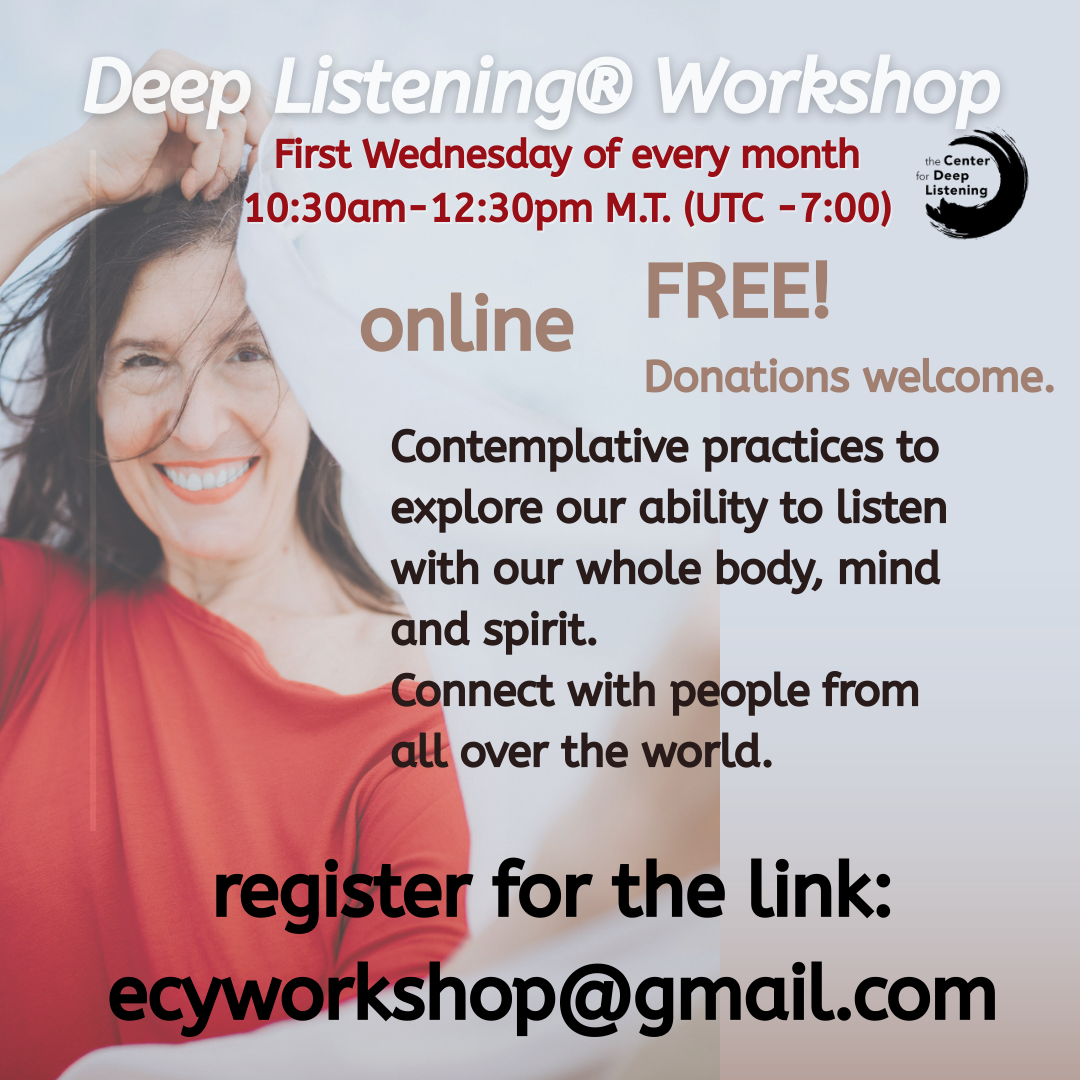 Online event! Connect with people around the world to explore the practice of Deep Listening. Email to admin@elenacamerinyoung.com for the link.